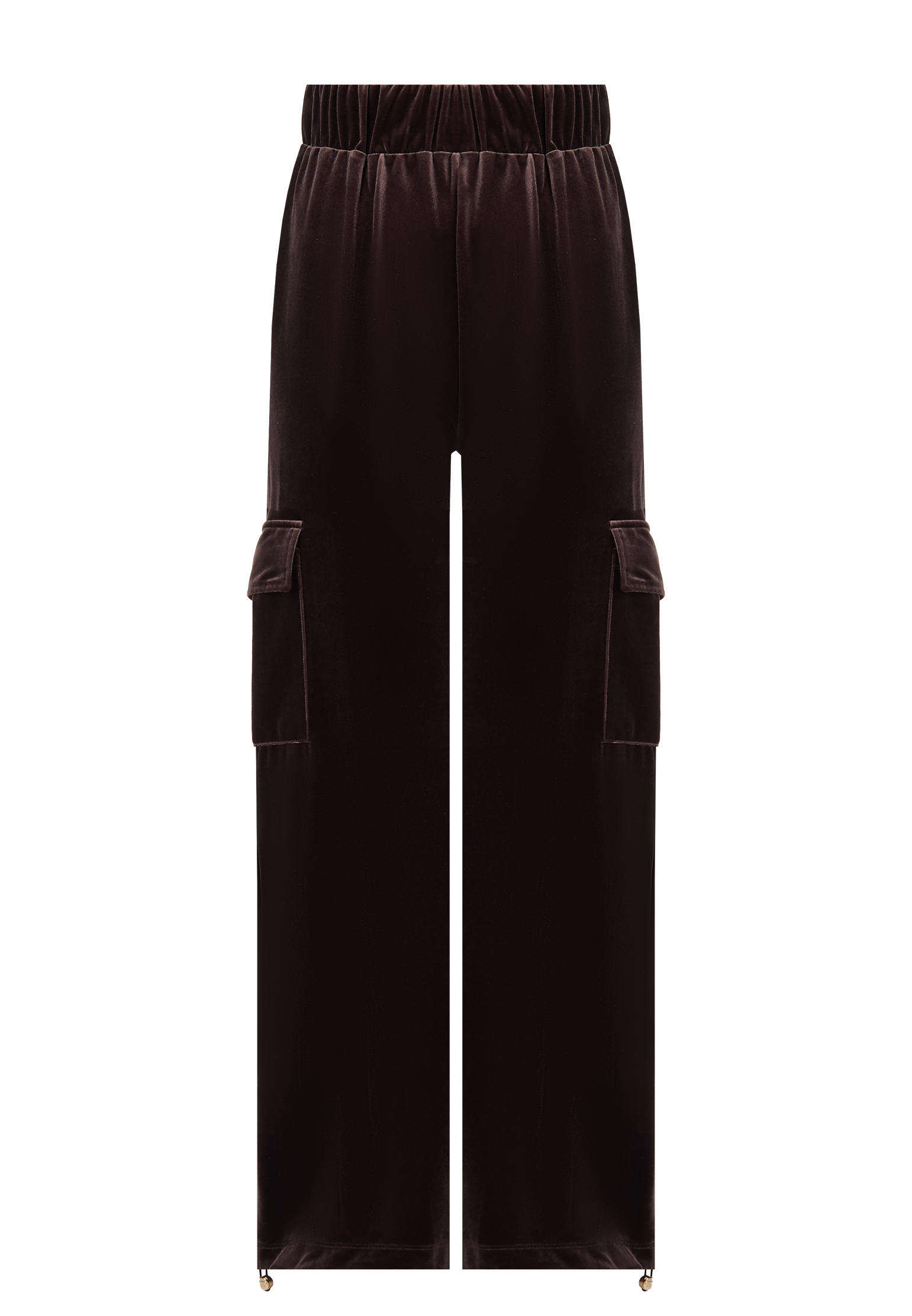 Брюки цвета горького шоколада предлагаются как стильное и практичное решение для вашего гардероба. Изготовленные из мягкого материала велюровой текстуры, они обеспечивают комфорт и свободу движений, что делает их идеальными для активного образа жизни. Удобный пояс на резинке надежно фиксирует модель на талии, добавляя дополнительный уровень комфорта. Дизайн дополняется функциональными карманами: классическими боковыми в швах и накладными, которые придают неформальный акцент. Универсальность брюк дает возможность легко сочетать их с различным верхом — от простой футболки до стильного свитера или куртки.