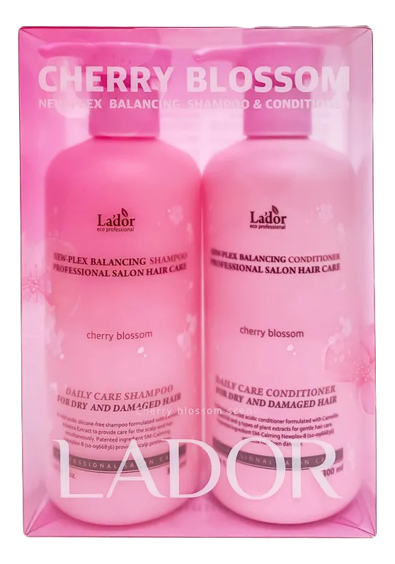 Набор New-Plex Balancing Cherry Blossom из коллекции косметической марки La`dor состоит из шампуня для волос и кондиционера с ароматом цветущей вишни.