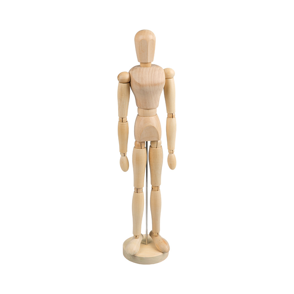 Манекен человека представляет собой куклу, изображающую человеческий силуэт/фигуру с подвижными деталями: руками, ногами, головой и телом. Детали между собой скрепляются металлическими болтиками и пружинками, что предоставляет возможность зафиксировать манекен в необходимом положении. Деревянные манекены используют любители, начинающие художники, художники как наглядное пособие для отработки зарисовки частей тела человека, а также силуэт/фигуру человека в различных позах.