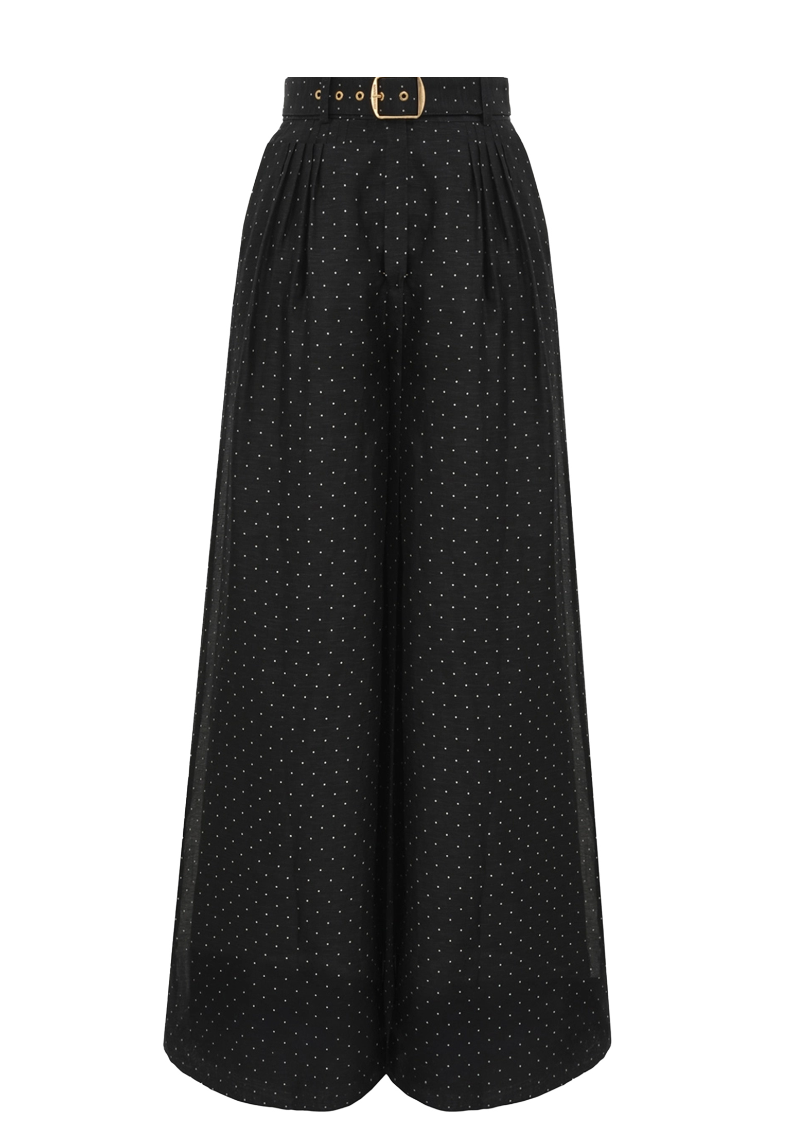 Широкие брюки Zimmermann из струящейся ткани - это воплощение роскоши и элегантности. Выполненные на основе шелка и льна, они отличаются неповторимой легкостью и комфортом. Эффектный черный цвет в сочетании с изысканным принтом в мелкий горох делает изделие универсальным элементом гардероба, который подчеркнет ваш стиль в любой ситуации. Ремень в тон оснащен золотистой фирменной фурнитурой, добавляющей элемент шика и утонченности. Эти брюки прекрасно подойдут как для официальных мероприятий, так и для повседневных образов, обеспечивая вам стильный и завершенный вид благодаря идеальному сочетанию материалов и продуманному дизайну.