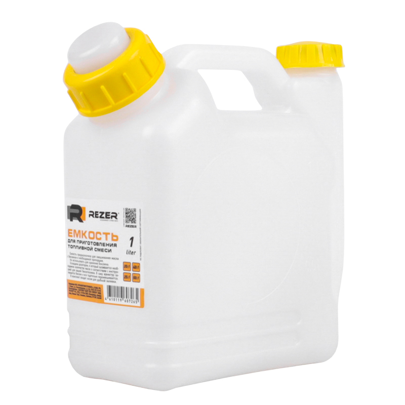 Емкость для приготовления топливной смеси Rezer 03.011.00083, 1л., отсек замера масла + отсек для смешивания с бензином