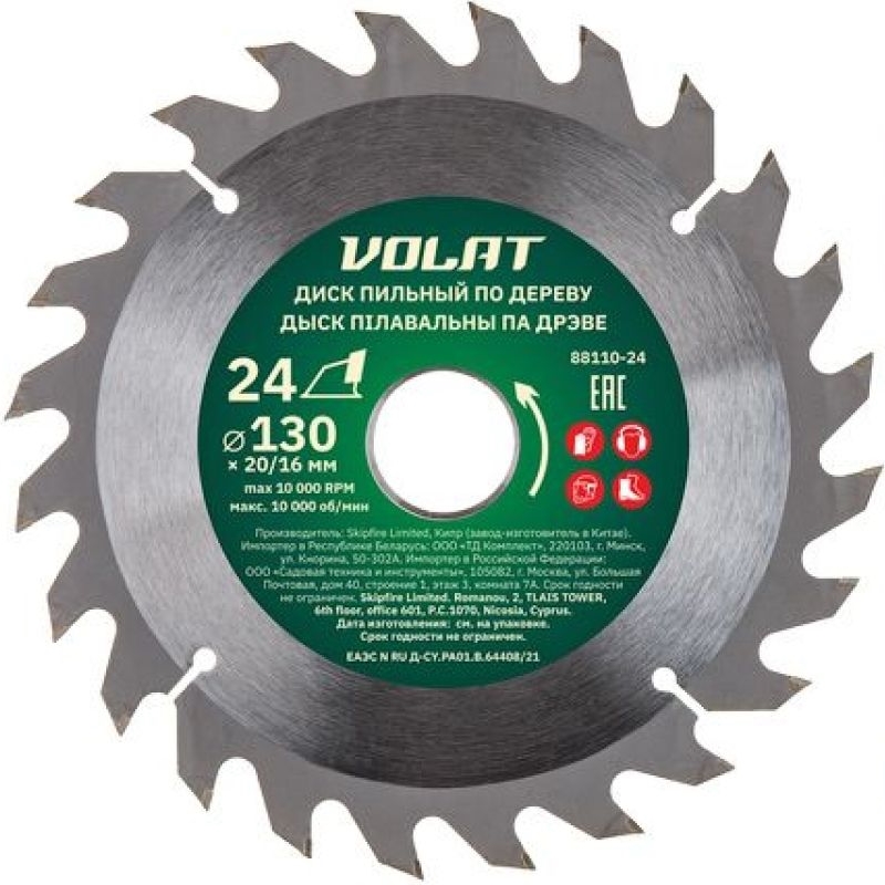 Диск пильный Волат 88110-24, 130х20/16 мм, 24 зуб. по дереву