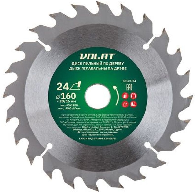 Диск пильный Волат 88120-24, 160х20/16 мм, 24 зуб. по дереву