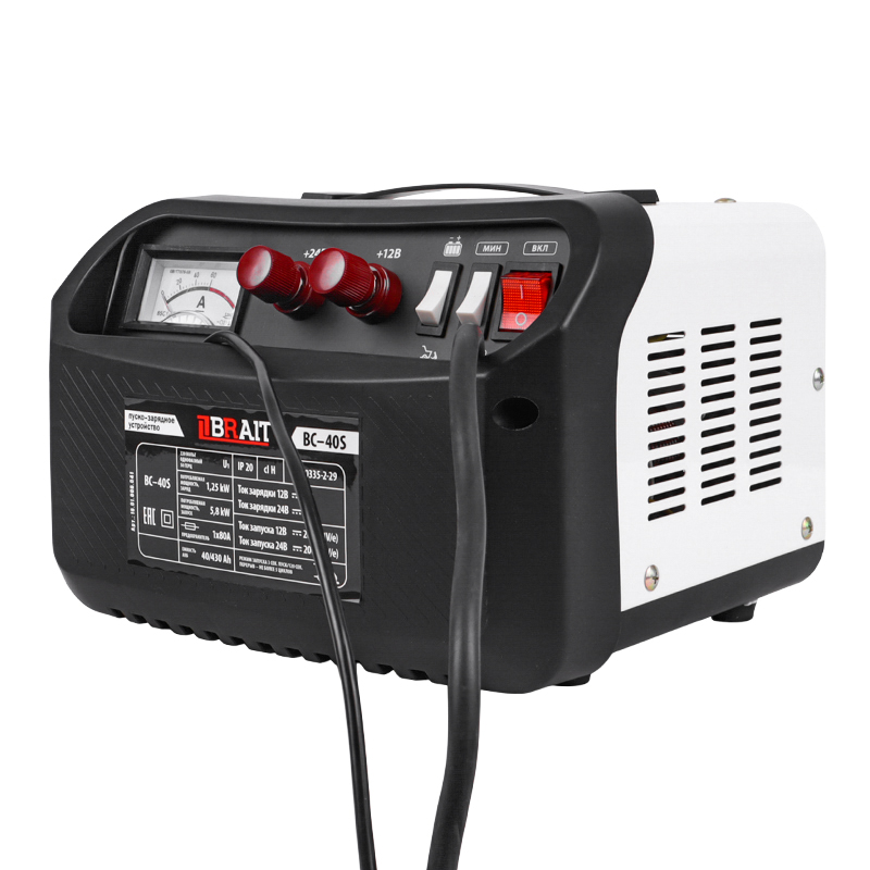 Устройство пуско-зарядное Brait BC-40S 19.01.006.041 (Напряжение 12/24В, емкость 40-430 А*ч, заряд 1,2 кВт, 35/32А, пуск 5,8 кВт, 200А)