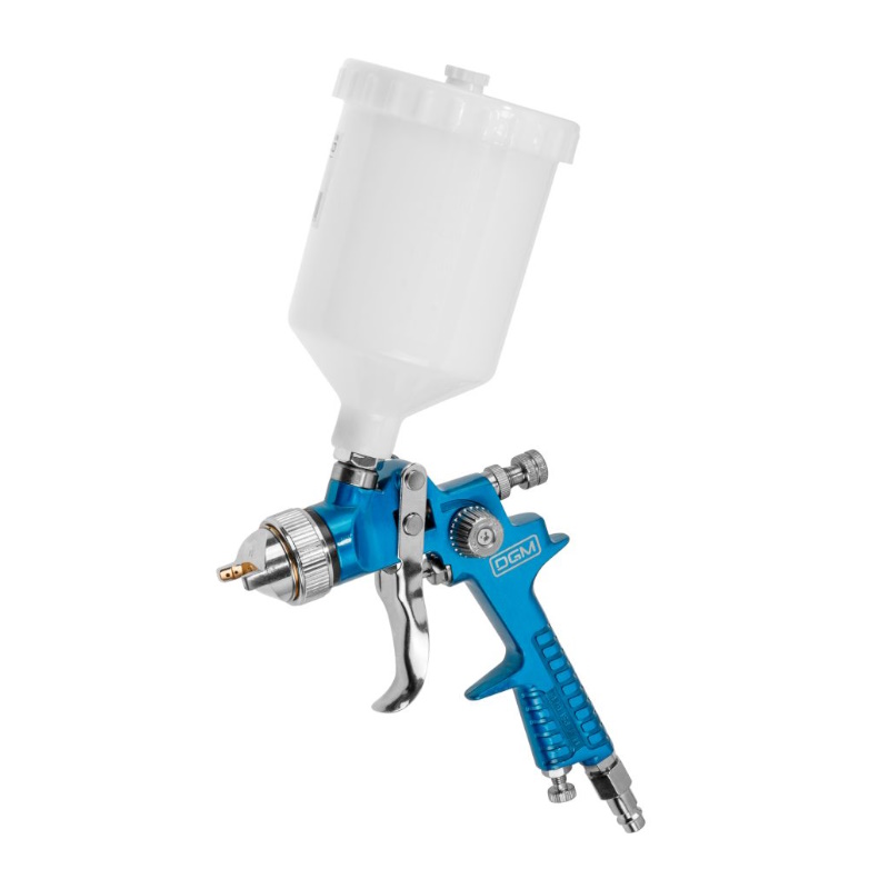 Краскораспылитель DGM Air Gun 800 (DG4016-3) — это пневматический инструмент типа HVLP (High Volume Low Pressure), предназначенный для профессионального и бытового нанесения лакокрасочных материаловПреимущества Благодаря принципу High Volume Low Pressure (большой объём при низком давлении) краскораспылитель минимизирует потери краски. Низкое давление на выходе обеспечивает равномерное осаждение частиц на поверхности, сокращая образование опыла и перерасход материала Пластиковый бачок верхнего расположения облегчает контроль уровня краски и позволяет быстро менять состав при необходимости. Объём в 600 мл оптимален для средних по масштабу работ — не требует частых дозаправок, но остаётся компактным и не утяжеляет инструмент