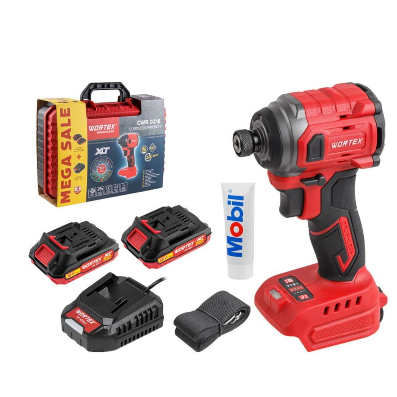 Аккумуляторный ударный гайковерт/винтоверт Wortex CWR 0218 XLT 1329731, 2x2 А*ч, в чемодане, бесщеточный, 18 В, 220 Н*м