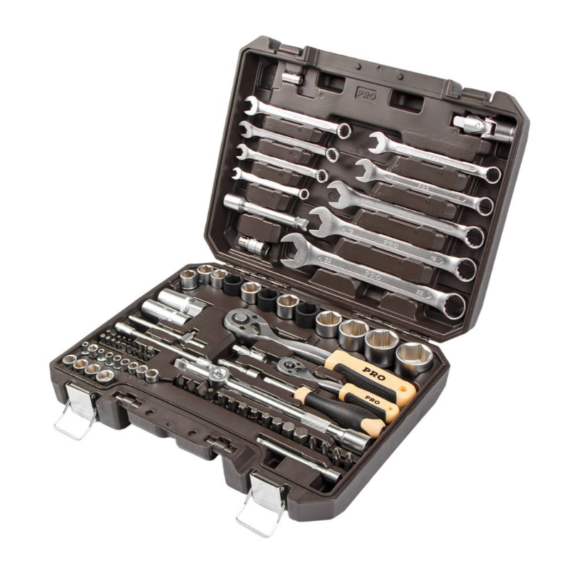 Набор головок и ключей Startul PRO DAKAR PRO-082DK, 82 предмета, 1/4",1/2" предназначен для использования в слесарных, автомобильных и монтажных работах.Преимущества Включает 82 элемента, охватывая большинство распространенных инструментов Головки изготовлены из хром-ванадиевой стали, что обеспечивает долговечность и устойчивость к коррозии Ударные головки 1/2” 17, 19, 21 мм выполнены из хромомолибденовой стали, обладающей повышенной прочностью и износостойкостью Головки 1/2" с усовершенствованным профилем работают c крепежом, грани которого скруглены на 85% Ключи с особой формой и рифлением зева сохраняют надёжный захват крепежа с износом граней до 80% Плавающие удлинители обеспечивают отклонение до 10° для работы в самых труднодоступных местах Комплектация включает ударные головки, специально разработанные для работы с ударными инструментами и в тяжёлых условиях эксплуатации Прорезиненные рукоятки эргономичной формы снижают усталость рук и обеспечивают надёжный захват Прочный кейс со складной ручкой для удобства хранения и транспортировки, разработанный специально для наборов PRO STARTUL DAKAR