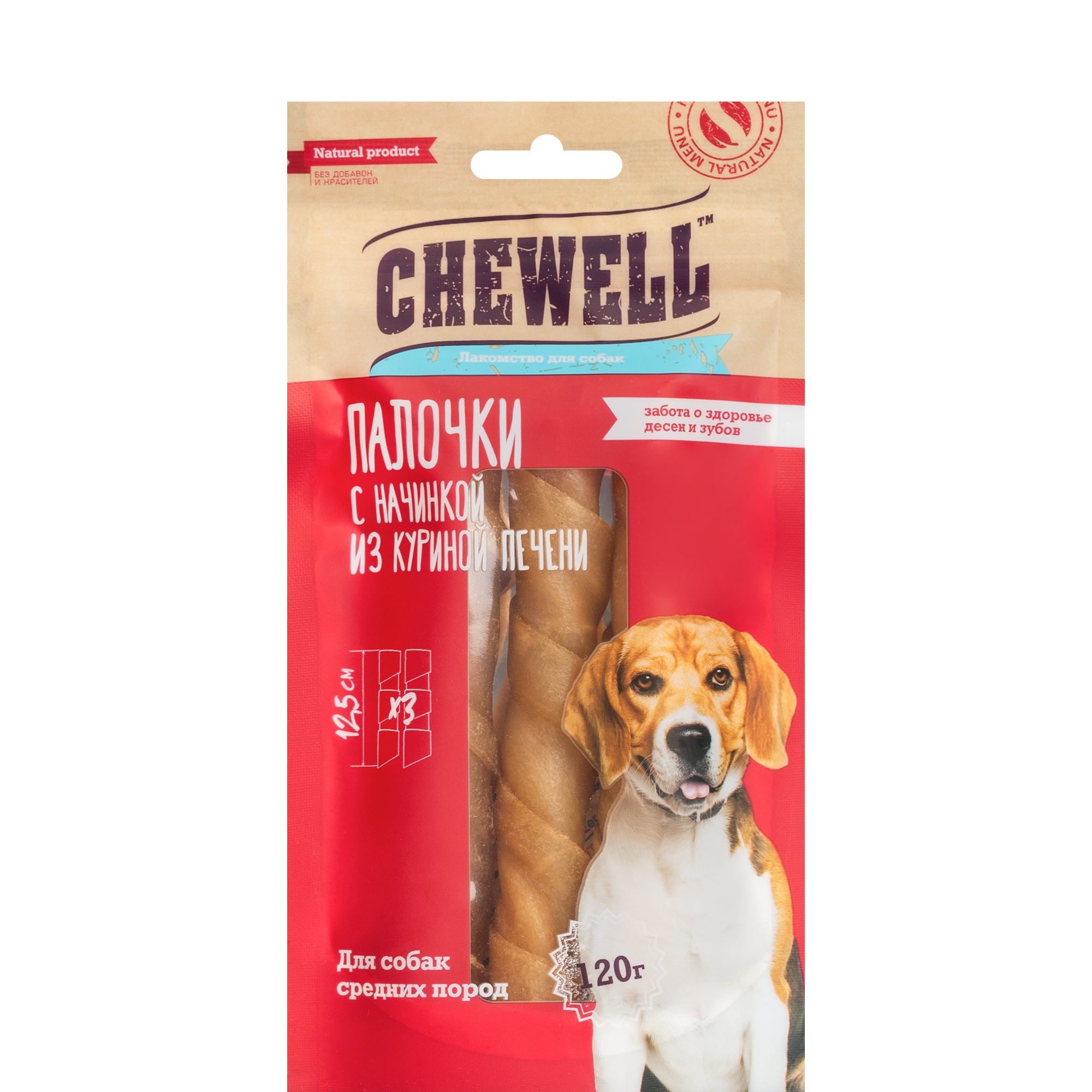 Chewell Лакомство из сыромятной кожи с начинкой из куриной печени для собак средних пород 120г