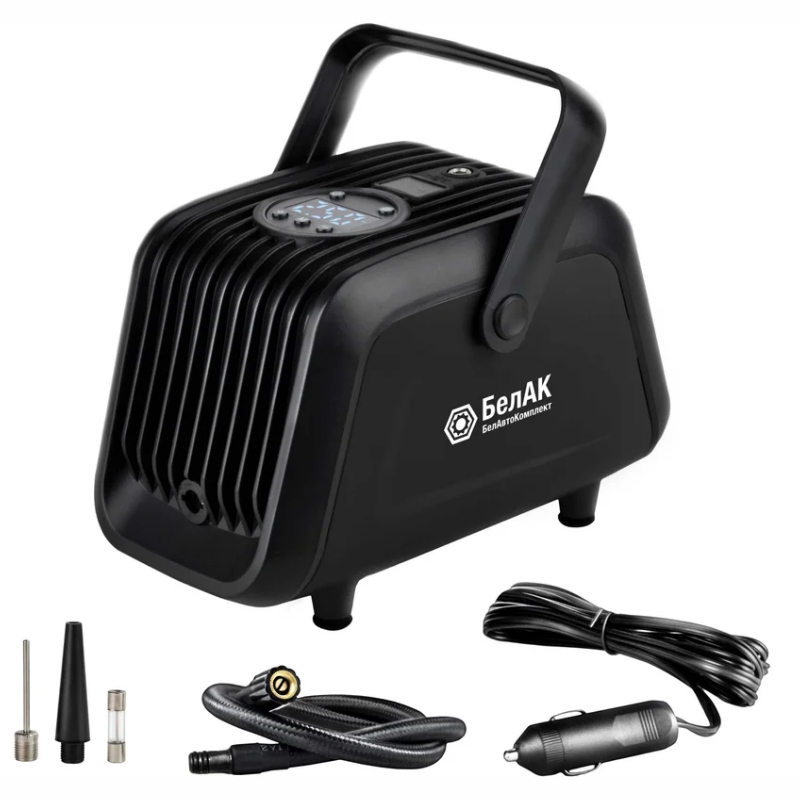 Компрессор для накачки шин БелАК ТУРИСТ-45Ц БАК.99185 — однопоршневой компрессор с цифровым манометром и встроенным фонариком, работающий от 12 В и производительностью 45 л/минПреимущества Цифровой манометр обеспечивает точность и удобство контроля давления Встроенный яркий LED-фонарь повышает комфорт и безопасность использования в ночное время Высокая производительность 45 л/мин позволяет быстро накачивать шины легковых авто, велосипедов, мотоциклов и другие надувные изделия Резиновые ножки гарантируют устойчивость на разных поверхностях, даже мокрых или неровных Компактный и легкий компрессор легко хранить и транспортировать Надежная защита от короткого замыкания и перегрузок повышает безопасность эксплуатации В комплекте есть все необходимые насадки, что расширяет функциональность