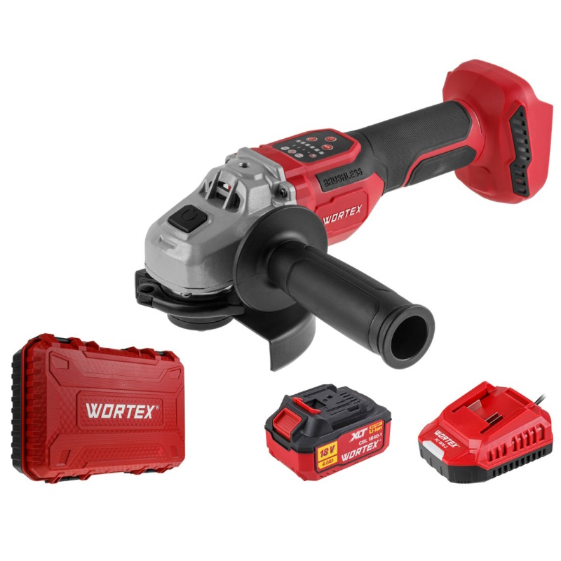 Аккумуляторная углошлифмашина Wortex CAG 1812-2 SE XLT SET 1334919, в чемодане, бесщеточная, 18 В, 125 мм, 3000-8500 об/мин