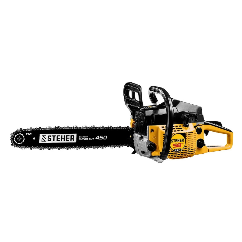 Бензопила Steher предназначен для пиления досок, бруса, стволов различных пород дерева. Представляет собой современный инструмент с простым и надежным двигателем, эффективной антивибрационной системой и продуманной формой рукояток. Отличное решение по уходу за садовым участком.Преимущества Повышенная мощность при компактных размерах Насос подкачки топлива способствует более легкому запуску, даже в холодную погоду Продуманная виброгасительная система, очень эффективна при длительном пилении Электронная система зажигания обеспечивает ровную, экономичную и экологичную работу двигателя Насос принудительной подачи смазки к цепи уменьшает износ, что увеличивает срок службы цепи и шины Тормоз мгновенного действия обеспечивает высокую безопасность работ, мгновенно останавливая пильную цепь в случае опасности Система предварительной очистки воздуха удаляет из входного воздуха наиболее крупные частицы и увеличивает срок службы фильтра Удобная эргономичная рукоятка Емкость для смешивания в комплекте