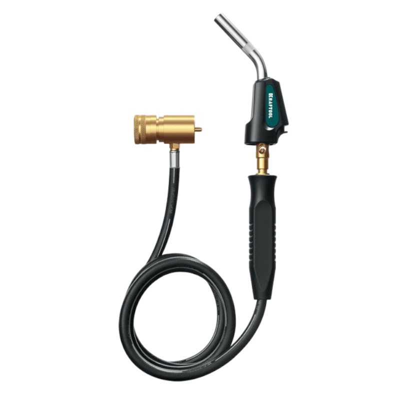 Газовая горелка Kraftool KS-8000 55512, Blue Fire, со шлангом 1.4м, с пьезоподжигом, на баллон, турбо нагрев + 30%, 2000°C идеально подходит для пайки медных труб большого диаметра, для пайки твердым припоем, термической обработки. Изделие обладает возможностью выбора температурного режима, что позволяет максимально соответствовать требованиям любой работы. Создает устойчивое пламя температурой более 2000 °С.Преимущества Максимальная мощность 2,7 кВт Работа в любом удобном положении - 360° Температура нагрева более 2000С Встроенный пьезоподжиг Система гашения вспышек Anti Flafe Вихревое TURBO пламя ускоряет нагрев до 30% Одна и та же горелка может иметь несколько различных температур. При работе с любым газом самая горячая часть пламени находится верхней части внутреннего пламени, где бледное внешнее пламя встречается с более темным внутренним пламенем Шланг для удаленного подключения баллона