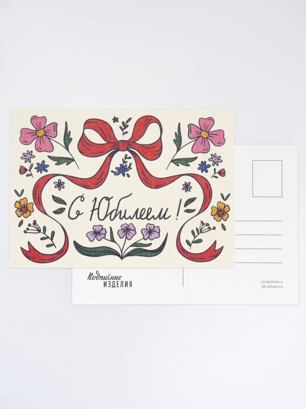Открытка. “Лайфстайл. Юбилей. Бант и цветы. тиснение” Подписные издания