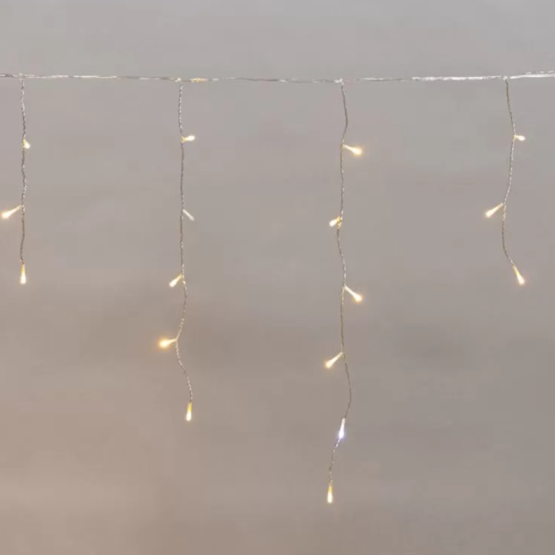 Гирлянда светодиодная Neon-Night "Айсикл" 255-526 представляет собой горизонтальный провод 5 м, на котором располагаются вертикальные нити разной длины от 30 до 60 см. Благодаря своей форме гирлянда оптимально подходит для оформления гардин, ниш, открытых проемов между комнатами, а также крыш, навесов, перил и других элементов зданий и ограждений. Степень защиты IP44 позволяет использовать гирлянду как на открытом воздухе под навесом, так и внутри помещений.Преимущества На каждой нити располагаются светодиоды, создающие эффект сверкающих сосулек Прозрачный провод изделия делает светящиеся линии более выразительными и образует гармоничную яркую композицию Особенностью гирлянды является эффект мерцания, который добавляет динамики и создает магическую атмосферу