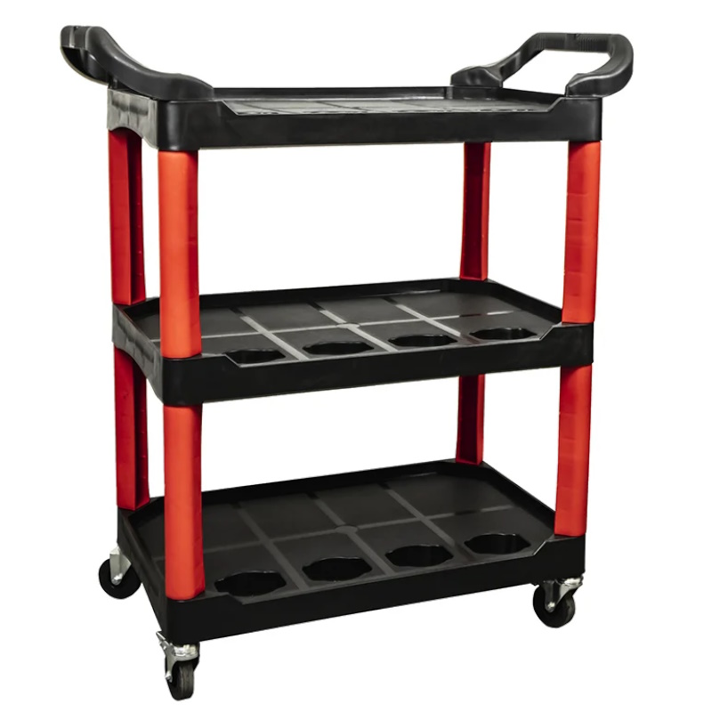 Тележка открытая на колесах Станкоимпорт TIL80013, 3 полки предназначены для использования на предприятиях любого профиля осуществляющих ремонт, обслуживание и изготовление продукции. Наибольшей популярностью открытые тележки пользуются в сфере авторемонта и обслуживания автомобилей.Преимущества Маневренность – четыре композитных колеса 100 x 27 мм на шарнирах, два из которых оснащены фиксатором Устойчивость конструкции Возможность блокировки движения для фиксации Легкий вес при достаточной прочности Практичная открытая конструкция