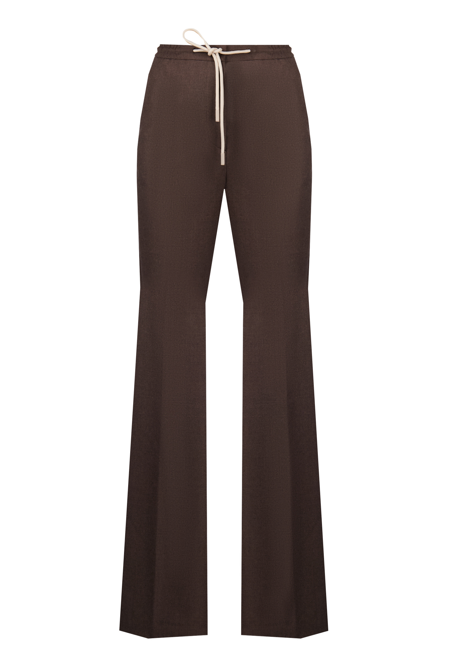 Расклешенные брюки в шоколадном оттенке — это воплощение стиля и комфорта. Этот фасон обеспечивает облегающую посадку в области бедер, что выгодно подчеркивает фигуру и создает женственный силуэт. Эластичный пояс на кулиске не только добавляет удобства, но и позволяет легко адаптировать модель под индивидуальные особенности фигуры, обеспечивая максимальный комфорт в течение всего дня. Удлиненные брючины со стрелками — ключевой элемент, который визуально вытягивает силуэт, делая его стройнее и элегантнее. Сдержанный дизайн позволяет носить их в самых разнообразных ситуациях — от офисных будней до вечерних выходов. Их можно комбинировать с различными элементами гардероба: будь то классическая блуза для создания делового образа или легкий свитер для повседневного использования.