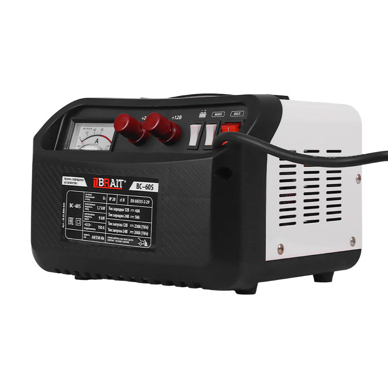 Устройство пуско-зарядное Brait BC-60S 19.01.008.041 (Напряжение 12/24В, емкость 60-550 А*ч, заряд 1,7 кВт, 40/50А, пуск 9 кВт, 260А)