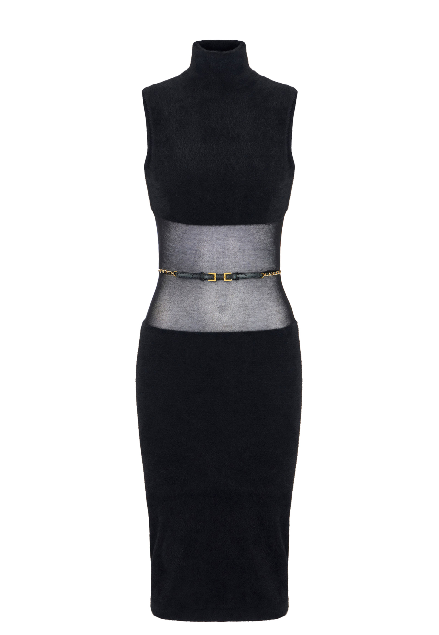 Трикотажное платье от Elisabetta Franchi — это синоним элегантности и современного стиля. Приталенный крой безупречно выделяет силуэт, создавая утонченный и женственный образ. Отсутствие рукавов вместе с высоким воротом добавляет модели строгости и изысканности, делая его подходящим как для деловых встреч, так и для вечерних выходов. Юбка-карандаш придает образу классическую нотку, подчеркивая бедра и придавая фигуре стройность. Особое внимание привлекает полупрозрачная линия талии, которая придает этому изделию воздушность и легкость, а тонкий ремень добавляет акцент на изяществе талии, завершая образ с элегантной утонченностью. Это платье — идеальный выбор для тех, кто ищет баланс между изяществом и современной модой.