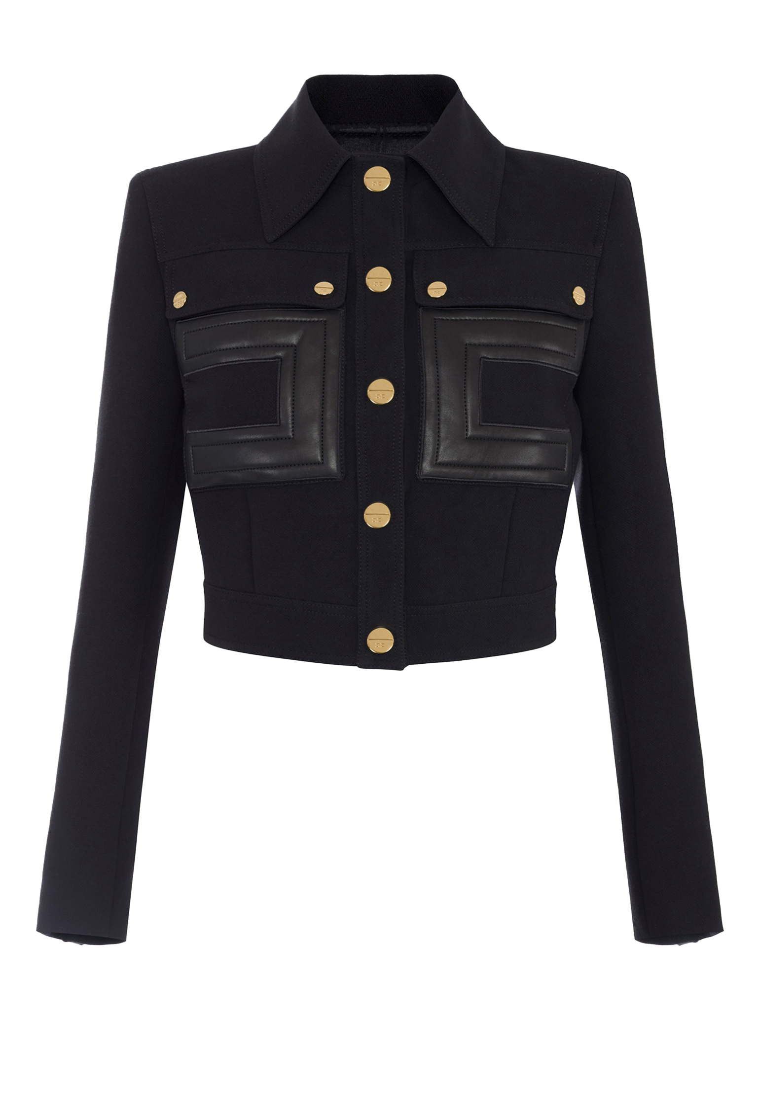 Укороченный жакет из черного крепа от Elisabetta Franchi — это пример современного стиля и изысканности. Модель отличается структурированными плечами, которые придают силуэту четкость и выразительность. Отложной воротник добавляет классическую нотку, делая жакет универсальным элементом гардероба. Особенного внимания заслуживают детали в тон, такие как нашивки с тиснёным логотипом на карманах. Эти акценты подчеркивают четкость конструкции и вносят в образ нотки бренда. Внимание также привлекают пуговицы из золотистого металла с логотипом Elisabetta Franchi, которые расположены спереди. Они добавляют блеск и элегантность, делая жакет не только стильным, но и роскошным. Идеальный выбор для создания уникальных и запоминающихся образов, сочетающий классику и современность.