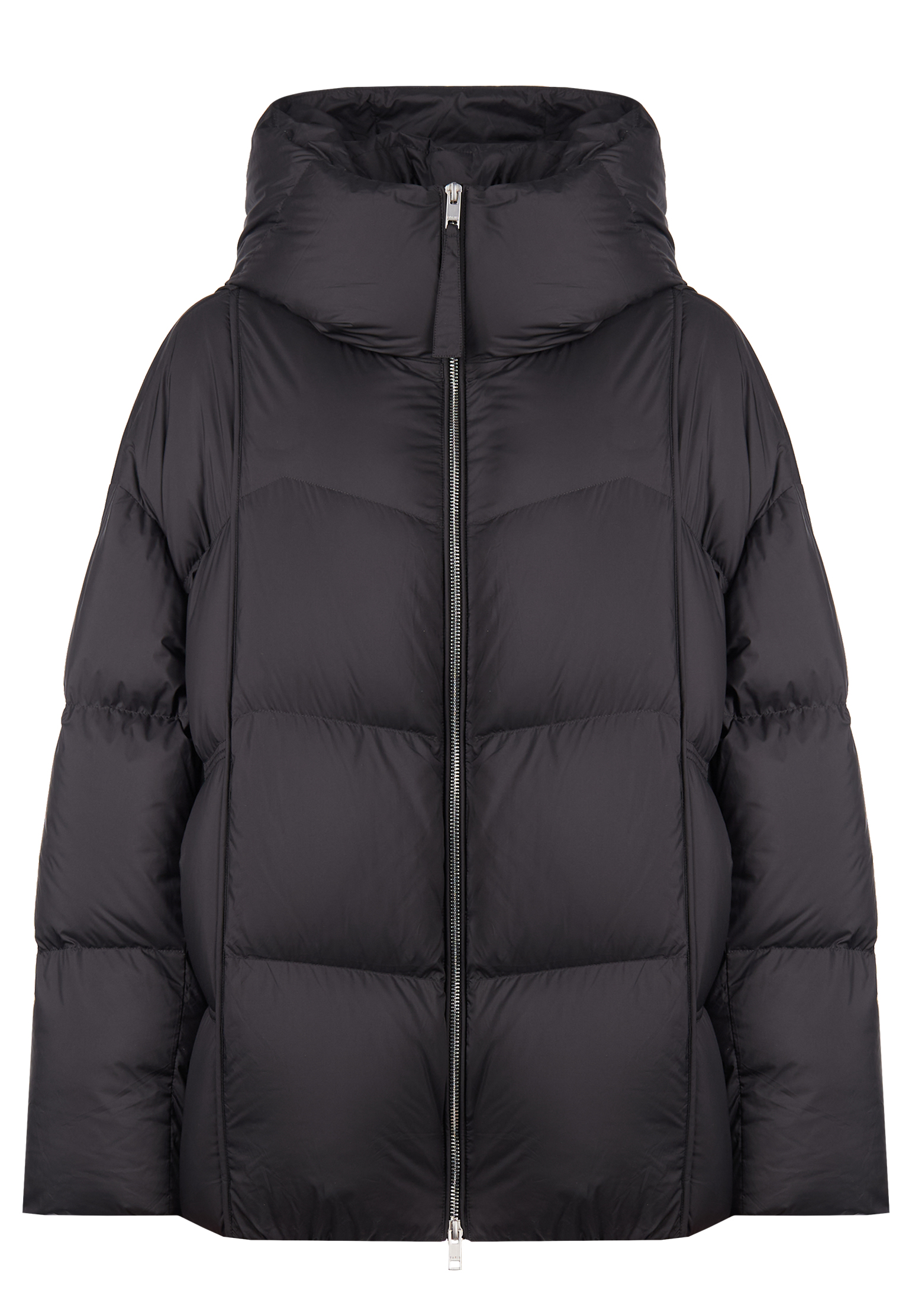 Верхняя часть изделия оснащена высоким воротником, плавно переходящим в капюшон, что добавляет образу изысканность и защищает от ветра. Уникальная встречная молния с длинным пуллером не только функциональна, но и придает пуховику современный вид. Наполнитель из 90% гусиного пуха и 10% пера гарантирует надежную теплоизоляцию без утяжеления. Разработанный во Франции и произведенный в России, этот пуховик станет идеальным выбором для ценительниц стиля и комфорта.