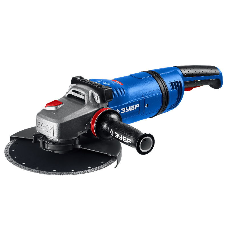 УШМ Зубр Профессионал УШМ-П230-2700 ПВСТ предназначена для зачистки, шлифовки и резки металлов, резки бетона и камня при установке соответствующих шлифовальных, отрезных, алмазных кругов.Преимущества Kickback protection (защита от обратного удара) - эффективная защита оператора от рывка инструмента при резкой остановке диска (при заклинивании). Также предотвращает разрушение диска с разлетом осколков HQM - повышенная стойкость двигателя к перегрузкам за счет более плотной укладки обмоток FDP - полная защита основных узлов от пыли Антивибрационные основная и дополнительная рукоятки для более комфортной работы при самых неблагоприятных условиях Возможность поворота основной рукоятки вокруг своей оси - это естественный хват при любой ориентации инструмента Поворотная с шагом 90° голова позволяет настроить изделие под левую руку или для резки Защитный кожух диска с простой фиксацией без инструмента Гайка МИГ для бесключевой замены диска Профессиональный уровень производства валов с механической обработкой после закалки предотвращает их деформацию Широкий эргономичный выключатель с пылезащитой, блокировкой непреднамеренного включения, а также фиксацией во включенном положении BOS - специальная конструкция щеткодержателя, предотвращающая повреждение коллектора при полном износе щеток