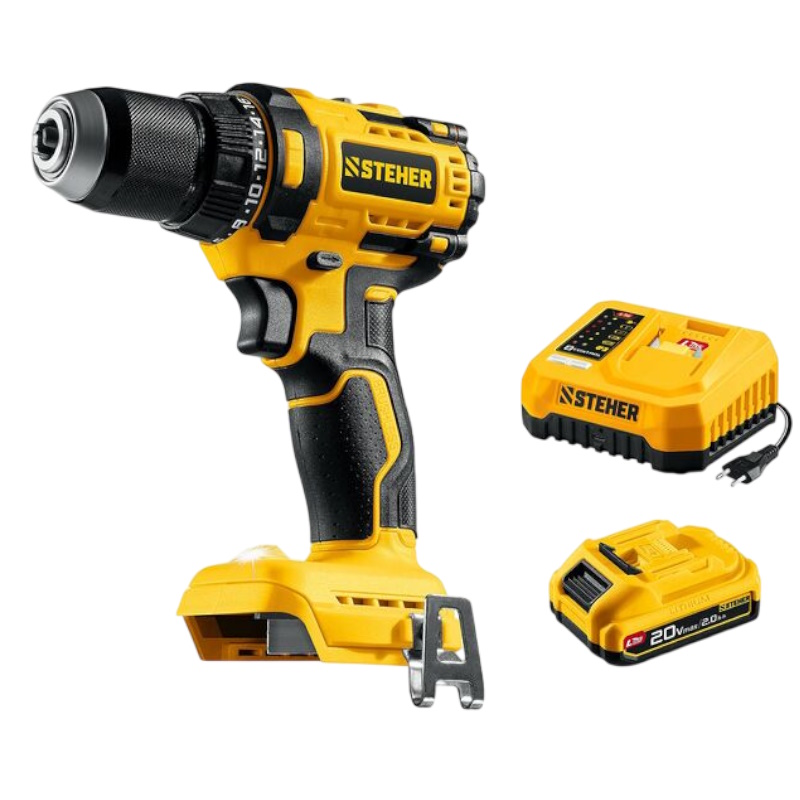 Дрель-шуруповерт бесщеточная Steher CB-65-21, 20 В, 65 Н·м, 1 АКБ LMS 2 А·ч