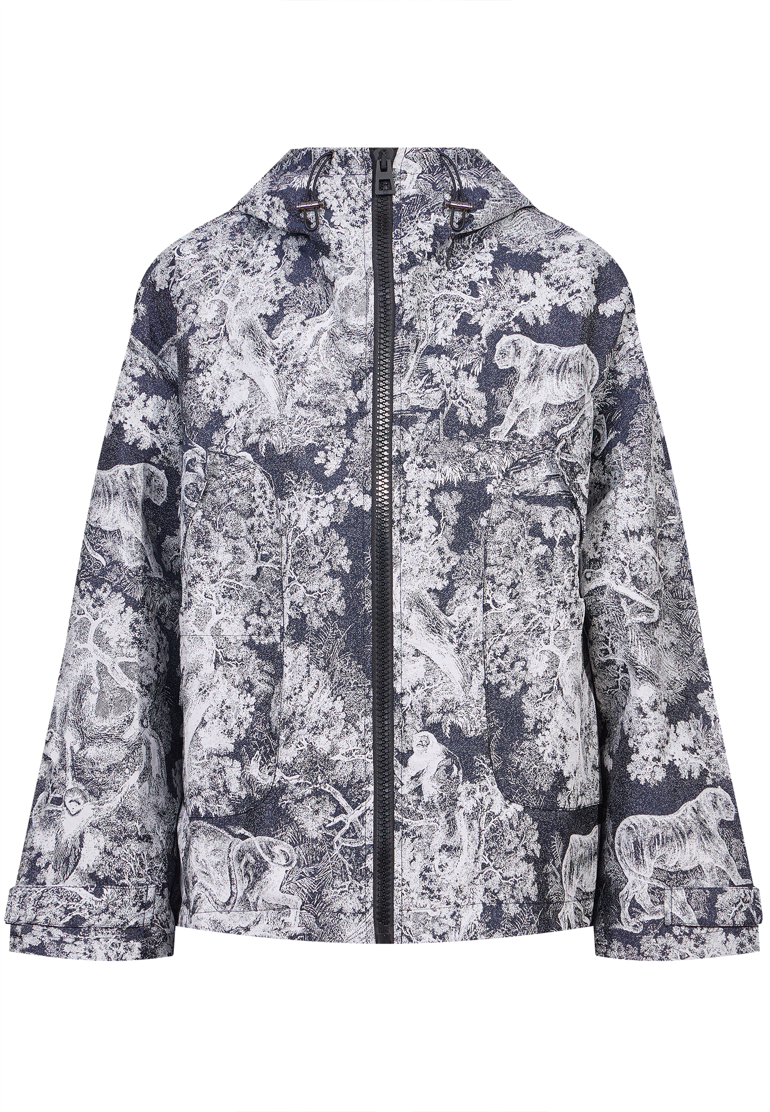 Окунитесь в мир изысканной элегантности и практичности с водонепроницаемой курткой Dioriviera, воплощенной в стиле модного Дома Dior. Выполненная из жаккардовой технической тафты высочайшего качества, эта модель темно-синего и белого цвета украшена захватывающим мотивом Toile de Jouy Sauvage — современной интерпретацией культового узора Dior, преображающей ваше представление о люксовой одежде.