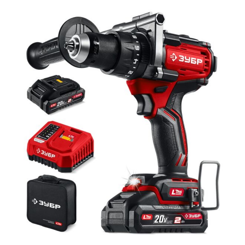 Дрель-шуруповерт Зубр ДБУ-165-22, бесщеточная, ударная, 20 В, 165 Нм, 2 АКБ LMS, 2 Ач, сумка