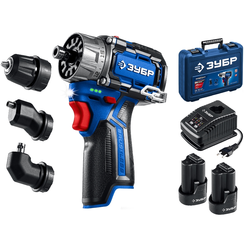 Модульная Дрель-шуруповерт Зубр DB-125-22, BRUSHLESS, кейс, Профессионал КОМБИ #3, 12 В, 45 Н·м, 2 АКБ тип Т7 (2 А·ч)