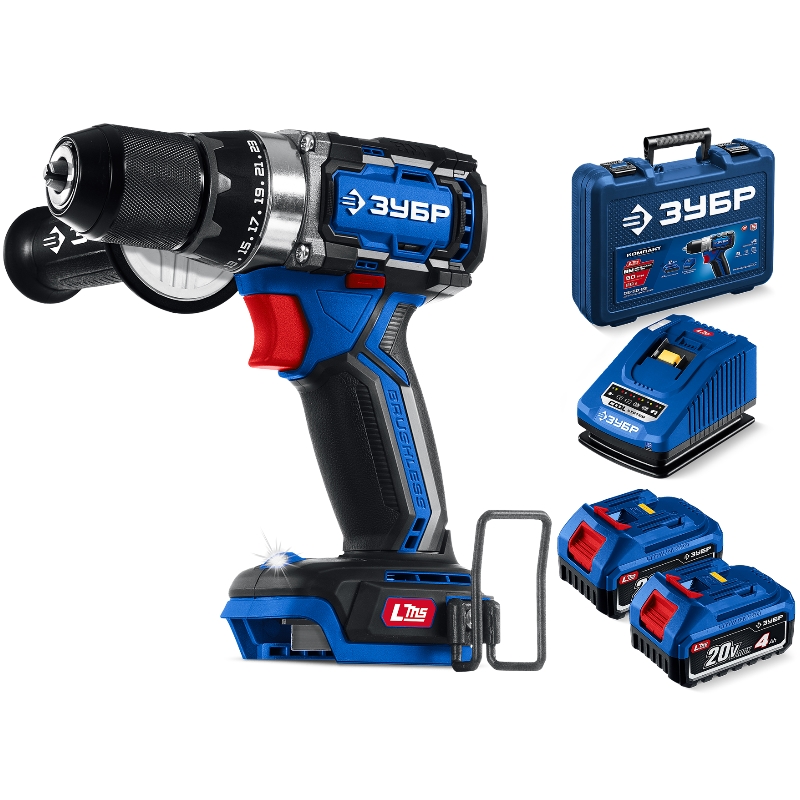 Бесщеточная Дрель-шуруповерт Зубр DB-70-42, кейс, ПРОФЕССИОНАЛ 20 В, 70 Н·м, 2 АКБ LMS (4 А·ч)