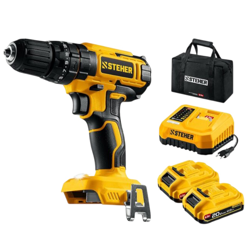 Дрель-шуруповерт ударная Steher CDS-40-22, 20 В, 40 Н·м, 2 АКБ LMS (2 А·ч), сумка