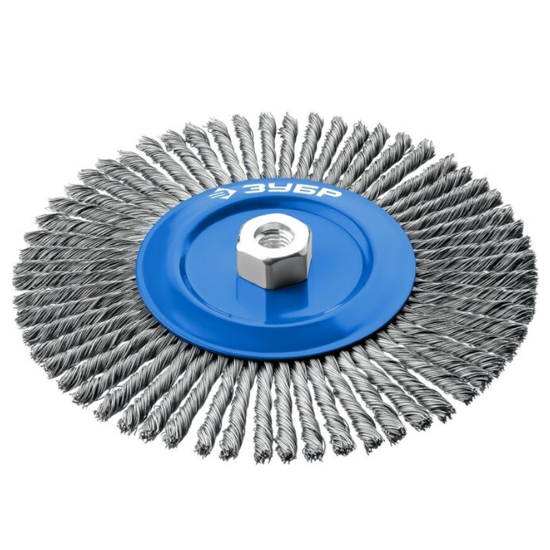 Щетка дисковая для УШМ Stayer 35192-200, сплетенная в пучки стальная закрученная проволока 0,5мм, 200мм/М14 применяется на УШМ для удаления ржавчины, шлаков, окалины с металлических поверхностей. Рекомендуется для обработки сварных швов, отливок из чугуна и стали.Преимущества Повышенный ресурс щетки благодаря еще более высокой жесткости сплетенного пучка и увеличенной толщине проволоки Зачистная способность рабочих пучков повышена благодаря специальной технологии тримминга Износостойкое покрытие защищает от коррозии