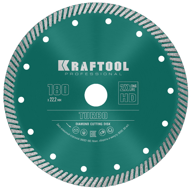 Алмазный диск Kraftool Turbo 36682-180, 180 мм, 22.2 мм, 10 х 2.6 мм, сегментированный