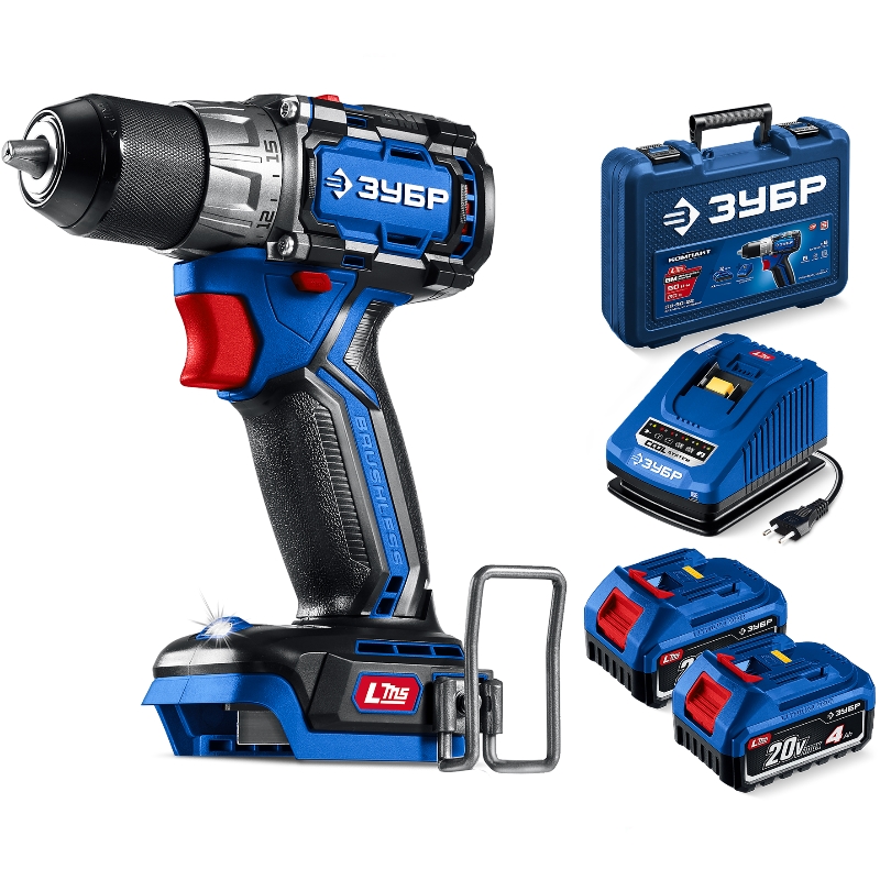 Бесщеточная Дрель-шуруповерт Зубр DB-50-42, КОМПАКТ #3 20 В, 50 Н·м, 2 АКБ LMS (4 А·ч), кейс, ПРОФЕССИОНАЛ