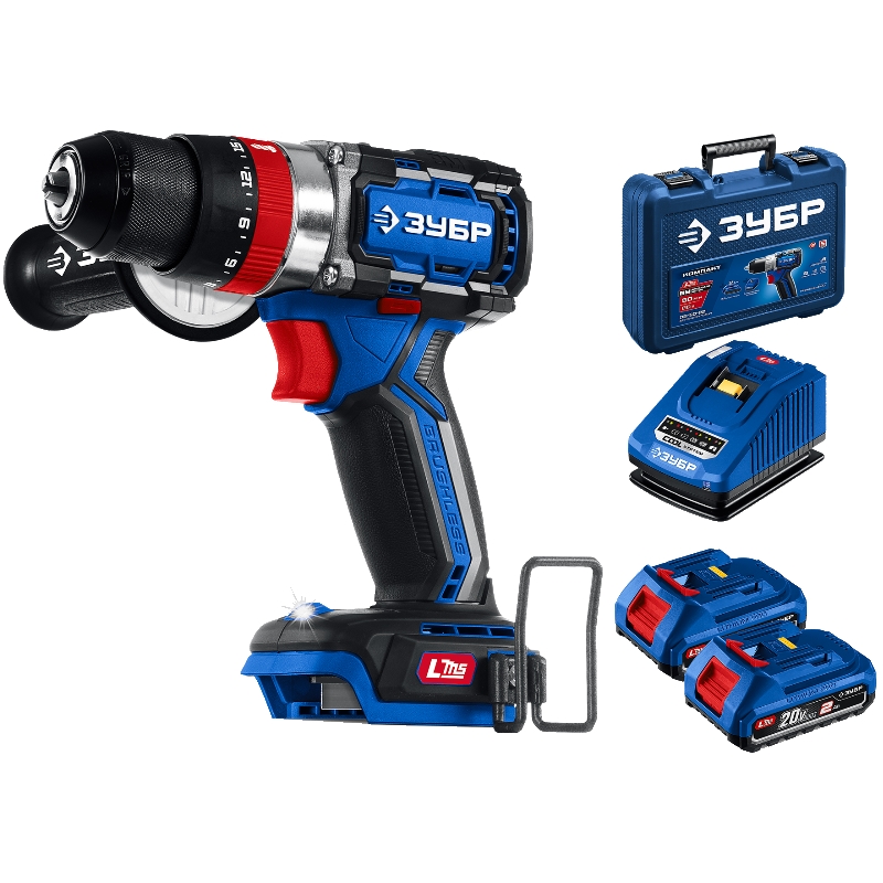 Бесщеточная ударная Дрель-шуруповерт Зубр DBS-70-22, кейс, ПРОФЕССИОНАЛ 20 В, 70 Н·м, 2 АКБ LMS (2 А·ч)