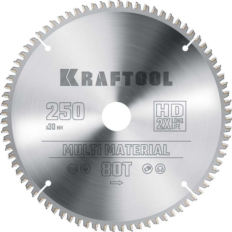 Пильный диск по алюминию Kraftool Multi Material 36953-250-30, 250 х 30 мм, 80Т