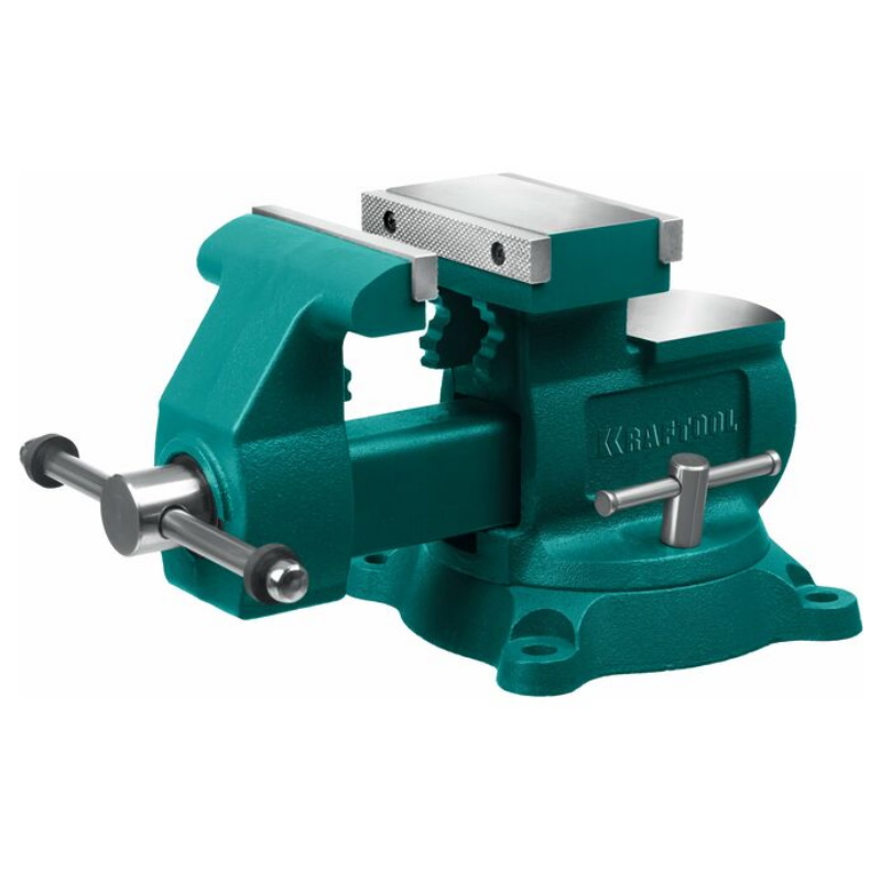 Слесарные тиски Kraftool Reversible 32705-140, 140 мм, расход 273 мм предназначены для зажима различных предметов или их отдельных составных элементов.Преимущества Инновационная конструкция для значительного увеличения ширина зажима Специализированный зажим для труб Усиленный корпус из высококачественного чугуна Рельефная поверхность губок для надежного и безопасного крепления деталей Надежная конструкция Закалённыe стальные губки Две широкие наковальни на корпусе для различных слесарных работ Поворотное основание на 360˚ Хромированная рукоятка Заменяемые губки