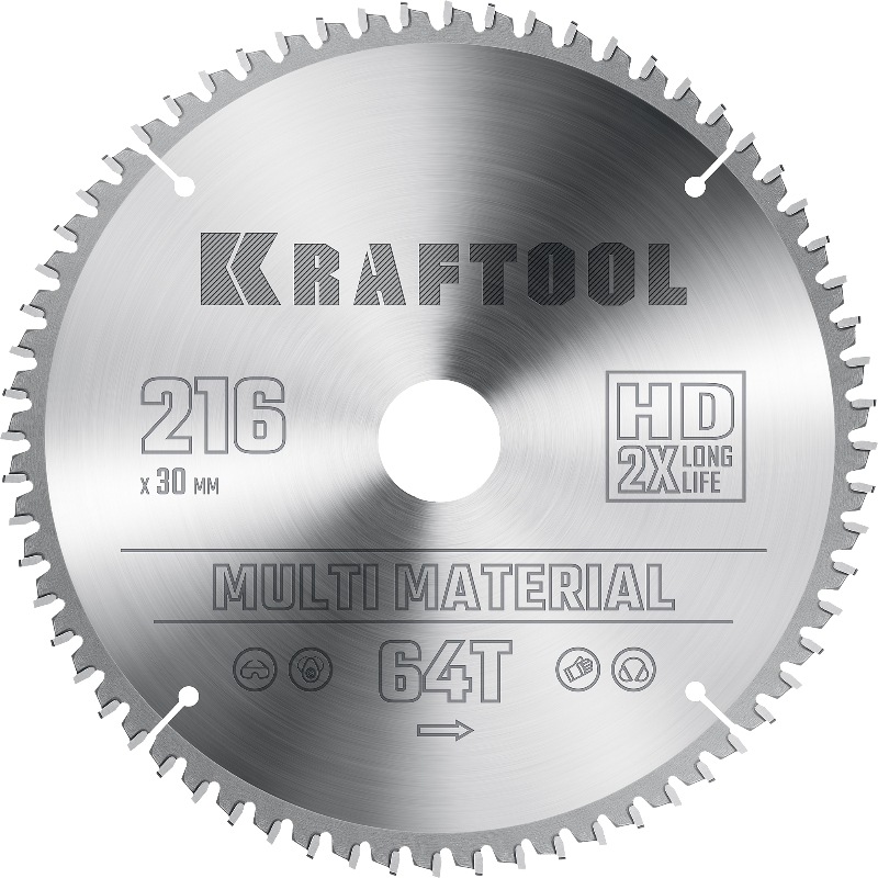 Пильный диск по алюминию Kraftool Multi Material 36953-216-30, 216 х 30 мм, 64Т