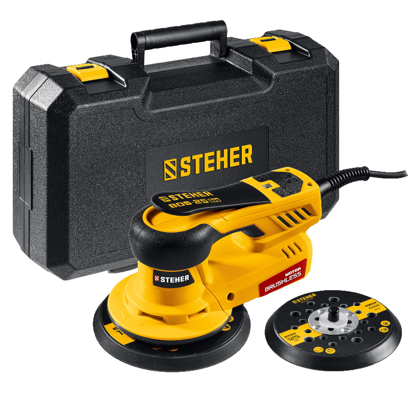 Бесщеточная орбитально-шлифовальная машина Steher BOS-25 Duo BOS-25, d125 / d150 мм, 2.5 мм, 350 Вт, кейс