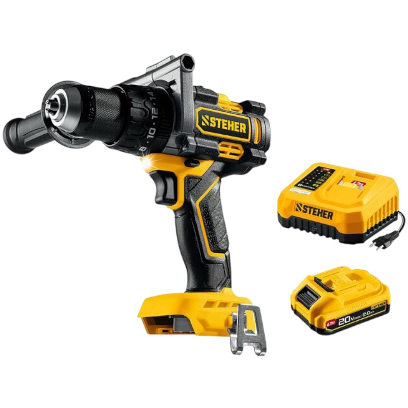 Дрель-шуруповерт бесщеточная ударная Steher CBS-165-21, 20 В, 165 Н·м, 1 АКБ LMS (2 А·ч)