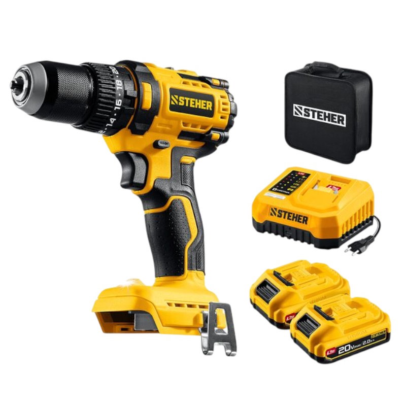 Дрель-шуруповерт бесщеточная ударная Steher CBS-65-22, 20 В, 65 Н·м, 2 АКБ LMS (2 А·ч), сумка