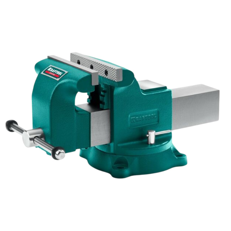 Слесарные тиски Kraftool GRAND 32702-250, 250 мм - надёжные профессиональные слесарные тиски KRAFTOOL GRAND изготовлены высококачественного чугуна с шаровидным графитом и соответствуют самым высоким техническим требованиям. Обеспечивают длительную и качественную работу. Встроенная наковальня и поворотное на 360˚ основание расширяют функционал использования инструмента.Преимущества Усиленный корпус из высококачественного чугуна Рельефная поверхность губок для надежного и безопасного крепления деталей Надежная конструкция Закалённыe стальные губки Наковальня для мелких слесарных работ Поворотное основание Хромированная рукоятка Заменяемые губки