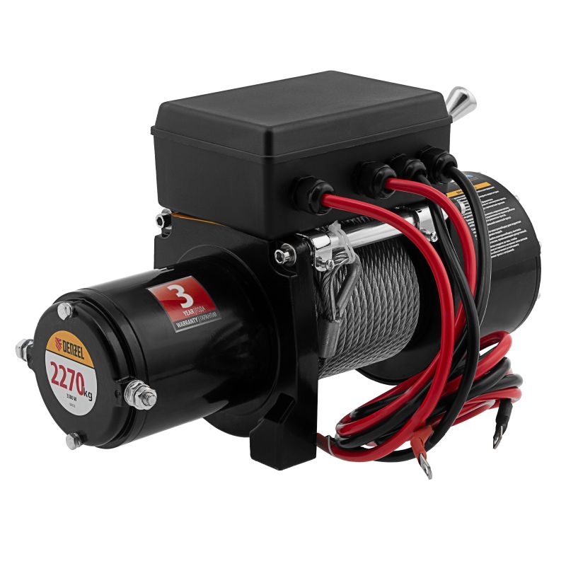 Автомобильная электрическая лебедка Denzel LB-2200 52022 мощностью 3,3 кВт работает от бортовой сети напряжением 12 В и предназначена для перемещения транспортных средств массой до 2,2 т. Монтируется на раме (бампере) автомобиля, незаменима в поездках, т.к. с ее помощью можно легко освободить застрявшее авто, квадроцикл и другую технику.Преимущества Высокий ресурс — прочный корпус и надежный тяговый механизм рассчитаны на длительную эксплуатацию Безопасная работа — стальной трос диаметром 6 мм отличается повышенной прочностью на разрыв, автоматическая тормозная система предотвращает его самопроизвольное разматывание Удобное управление — включение и выключение лебедки, размотка и намотка троса осуществляются при помощи выносного пульта Надежная фиксация — страховочный карабин на крюке предотвращает срыв груза Готовность к работе — лебедка поставляется с комплектом крепежа и направляющими роликами Гарантия 3 года — высокое качество изделия подтверждено производителем