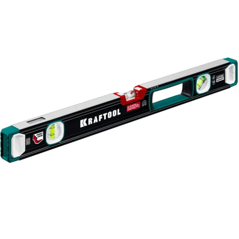 Сверхпрочный магнитный уровень Kraftool A-RATE CONTROL 34988-40, 400 мм, точность 0.3 мм/м, с зеркальным глазком - предназначен для контроля горизонтальности и вертикальности поверхностей.Преимущества Высочайшая точность 0.3 мм/м ACU-VIEW инновационный горизонтальный глазок 4-в-1: 0%, 1%, 2%, 3% с эффектом увеличения без боковых граней обеспечивает превосходную видимость в любом положении Измерения в перевернутом положении с точностью 0.7 мм/м 3 высокоточных колбы Зеркальная колба упрощает измерения вертикальных поверхностей Сверхмощные редкоземельные магниты 2 фрезерованных базовых поверхности Сверхпрочный утолщенный профиль X-HD из авиационного алюминия Эластичные заглушки поглощают удар при падении и снимаются для измерения в торец Большие удобные рукоятки Колбы из ударопрочного акрила
