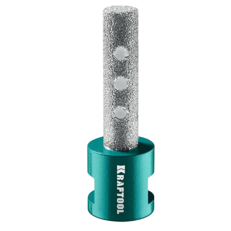 Вакуумная алмазная фреза пальчиковая Kraftool VS DIAMOND 29810-12, d 12 мм (М14; 50 мм) предназначена для растачивания и обработки отверстий в керамограните, граните, мраморе, твердой керамике, снятия фаски и сглаживания краев отверстий. Используются с УШМ на максимальных оборотах либо через переходник с дрелью или шуруповертом. Подходят как для сухой, так и мокрой обработки.Преимущества Технология вакуумной пайки алмазов Высокая концентрация и оптимальный размер алмазных зерен Повышенная износостойкость и ресурс Высокая скорость обработки Работа без охлаждения водой