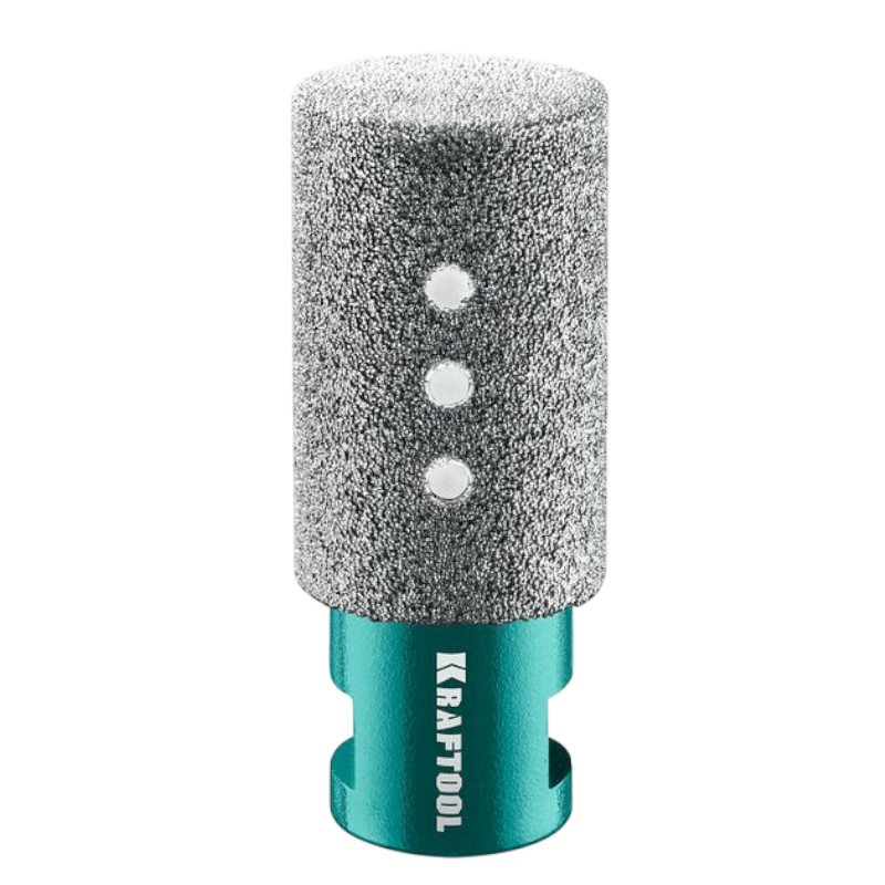 Вакуумная алмазная фреза пальчиковая Kraftool VS DIAMOND 29810-30, d 30 мм (М14; 50 мм) используется для растачивания и обработки отверстий в керамограните, граните, мраморе, твердой керамике, снятия фаски и сглаживания краев отверстий. Используются с УШМ на максимальных оборотах либо через переходник с дрелью или шуруповертом. Подходят как для сухой, так и мокрой обработки.Преимущества Технология вакуумной пайки алмазов Высокая концентрация и оптимальный размер алмазных зерен Повышенная износостойкость и ресурс Высокая скорость обработки Работа без охлаждения водой