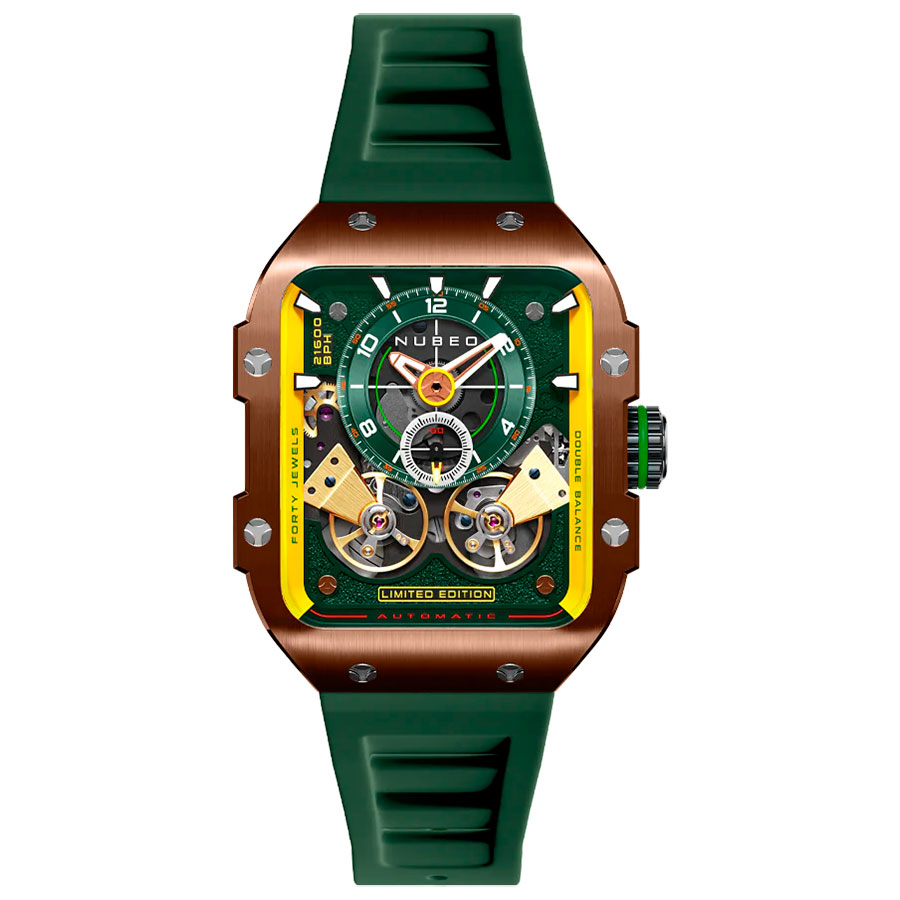 MAVEN, названный в честь космического аппарата NASA Mars Atmosphere and Volatile Evolution, представляет собой часы, вдохновленные сочетанием автомобильного, космического и часового дизайна. Мужские механические часы с автоподзаводом. Центральные часовая и минутная стрелки, малая секундная стрелка. Зеленый скелетонизированный циферблат. Стрелки и часовые метки с покрытием Swiss Newlite. Прямоугольный корпус выполнен из нержавеющей стали 316L с IP покрытием бронзового цвета. Размер корпуса составляет 44 х 54 х 16 мм. Заводная головка с защитой. Зеленый силиконовый ремешок шириной 26 мм, стандартная застежка. Устойчивое к возникновению царапин сапфировое стекло. Водостойкость WR 50 (мытье рук, дождь). Вес 200 г. Лимитированная серия - 150 экземпляров.