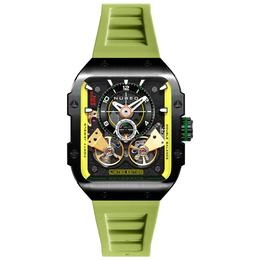 MAVEN, названный в честь космического аппарата NASA Mars Atmosphere and Volatile Evolution, представляет собой часы, вдохновленные сочетанием автомобильного, космического и часового дизайна. Мужские механические часы с автоподзаводом. Центральные часовая и минутная стрелки, малая секундная стрелка. Черный скелетонизированный циферблат. Стрелки и часовые метки с покрытием Swiss Newlite. Прямоугольный корпус выполнен из нержавеющей стали 316L с IP покрытием черного цвета. Размер корпуса составляет 44 х 54 х 16 мм. Заводная головка с защитой. Светло-зеленый силиконовый ремешок шириной 26 мм, стандартная застежка. Устойчивое к возникновению царапин сапфировое стекло. Водостойкость WR 50 (мытье рук, дождь). Вес 200 г. Лимитированная серия - 150 экземпляров.
