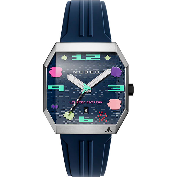 CONSOLE AUTOMATIC ATARI ASTEROIDS - часы, вдохновленные одной из самых культовых аркадных игр, вдохновлены винтажной консолью ATARI 2600 и классической игрой Asteroids. Мужские механические часы с автоподзаводом. Центральные часовая, минутная и секундная стрелки. Секундная стрелка в форме космического корабля отдаёт дань уважения пикселизированному движку Asteroids. Апертура даты в позиции 6 часов. Синий циферблат. Стрелки и часовые метки с покрытием Swiss Newlite. Восьмиугольный стальной корпус выполнен по образцу консоли ATARI. Размер корпуса составляет 42 х 45 х 15 мм. Синий каучуковый ремешок шириной 26 мм, стандартная застежка. Многогранное минеральное стекло устойчивое к мелким механическим повреждениям с антибликовым покрытием. Водостойкость WR 50 (мытье рук, дождь). Вес 95 г.