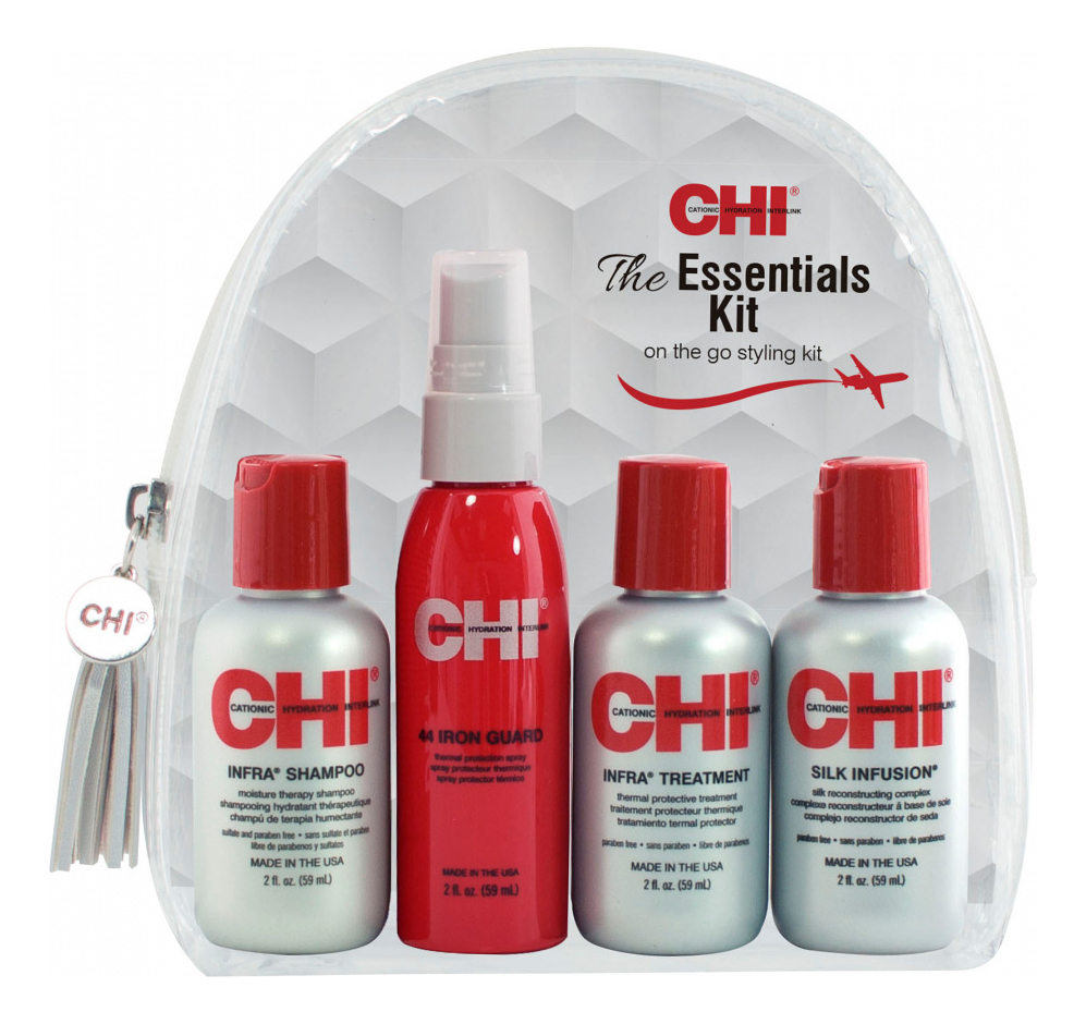 Дорожный набор для волос The Essentials Kit от американского бренда CHI предназначен для всех типов волос, особенно рекомендован для сухих, ломких, пористых и окрашенных.